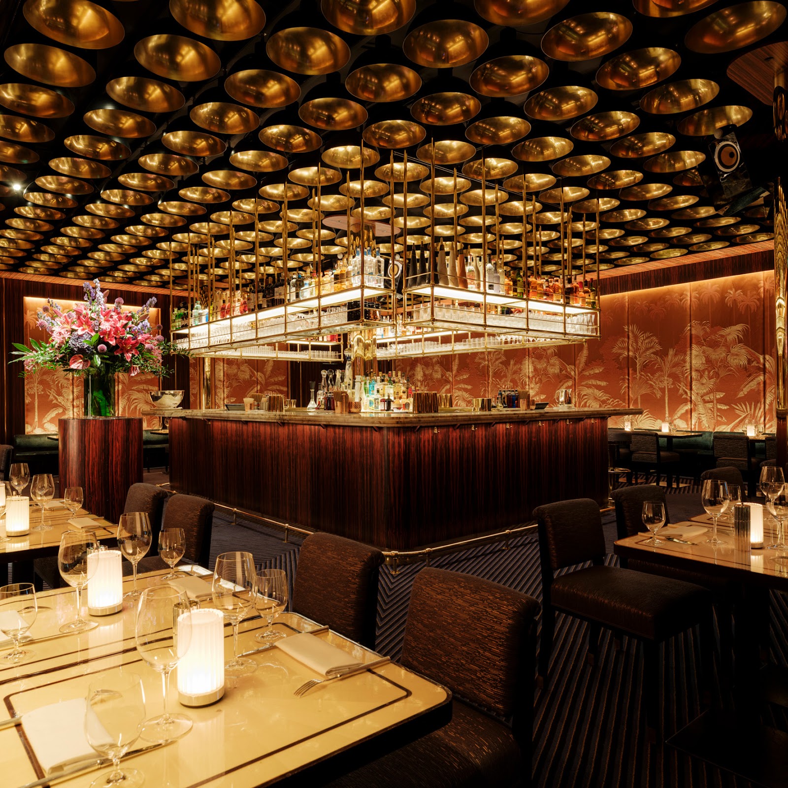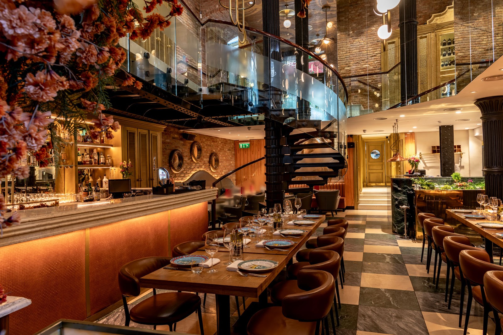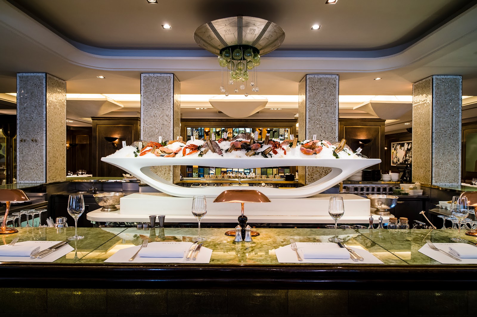 Richard Caring's most theatrical restaurant. The Frank Gehry fish sculptures, Damien Hirst mermaids and coral ceiling make this one of London's most visually arresting rooms — and the food more than keeps up.
