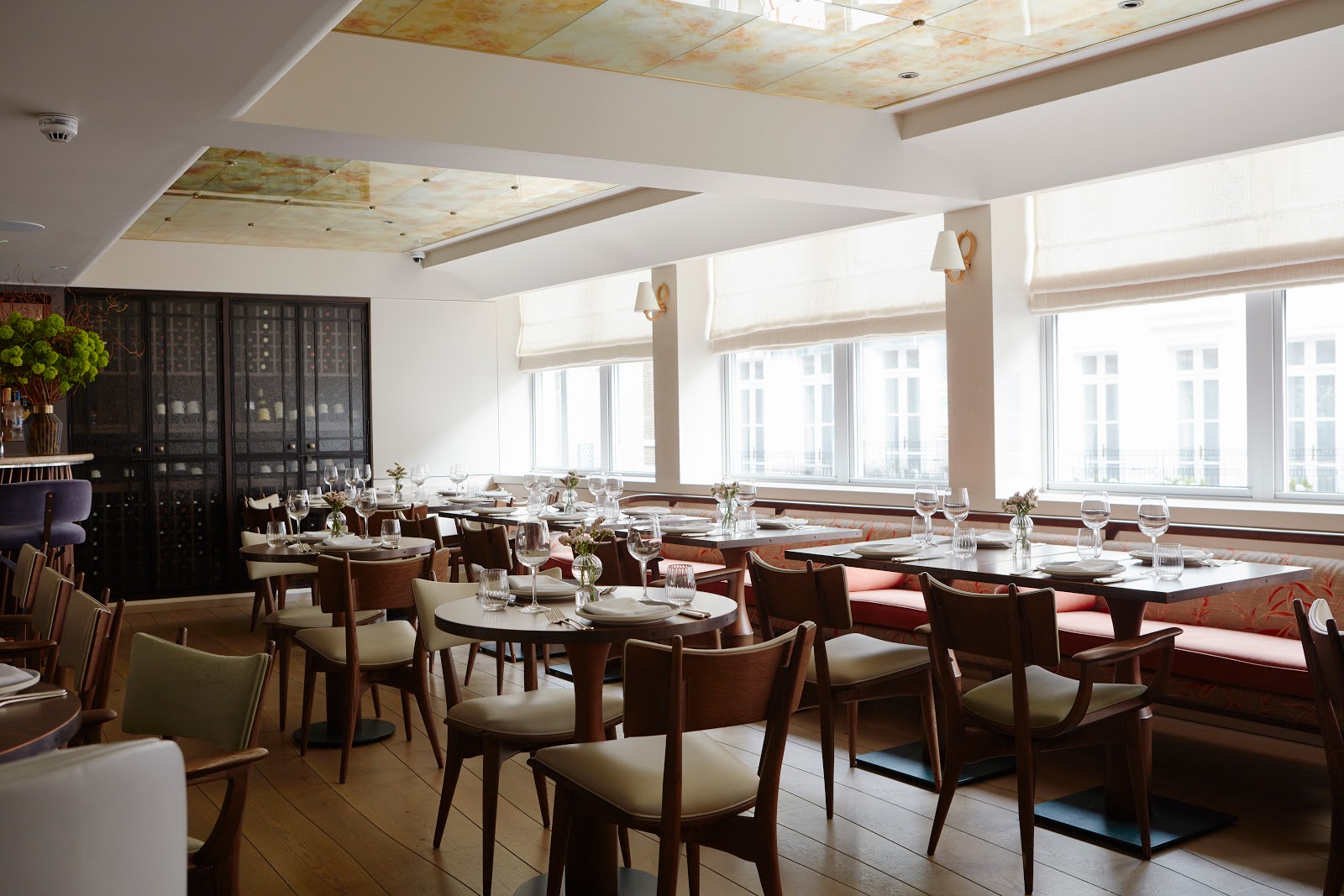 Ollie Dabbous's stunning restaurant opposite Green Park spans three floors and serves exceptional modern British cuisine. The tree-like staircase and park views make it one of London's most striking dining rooms.
